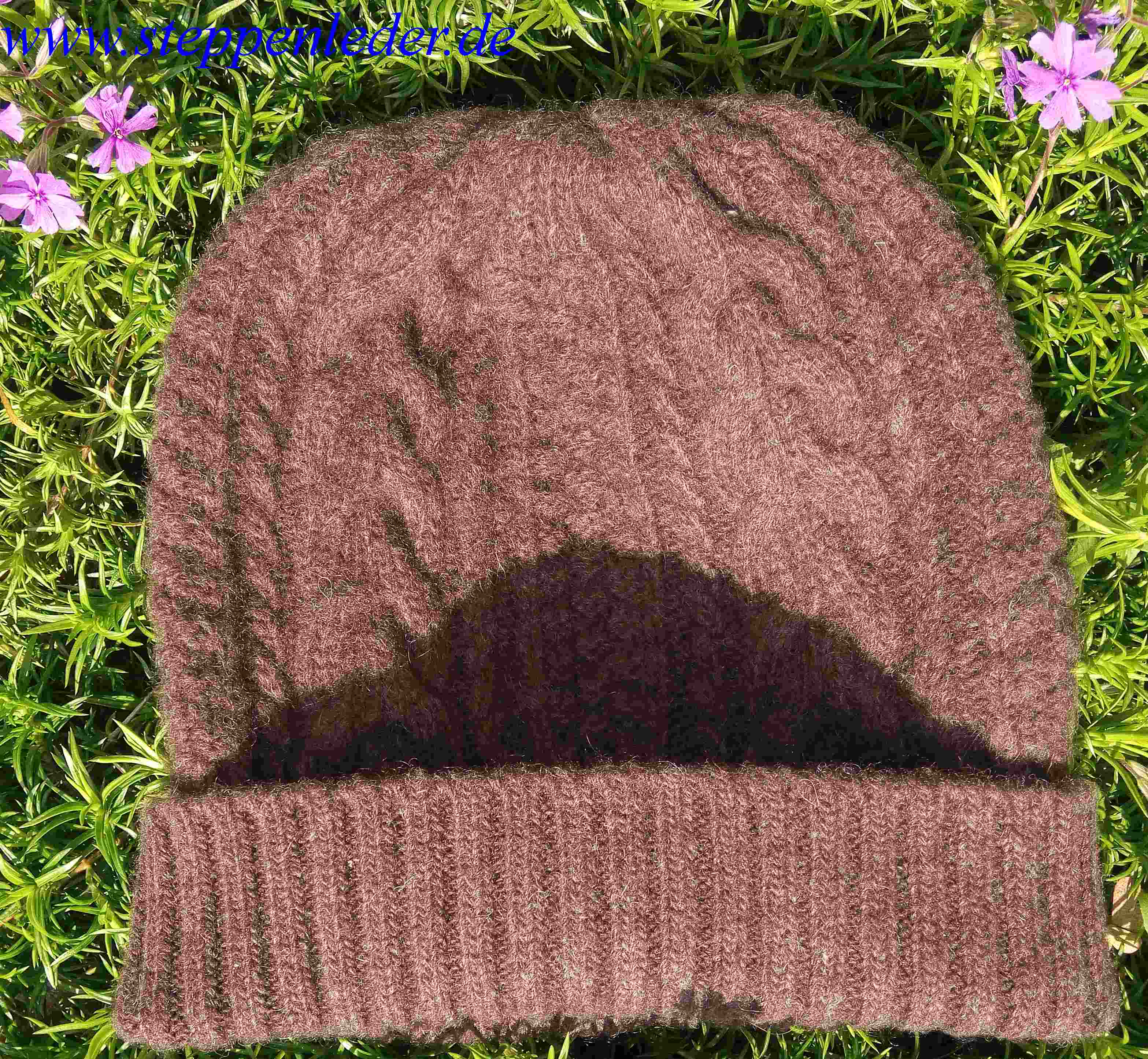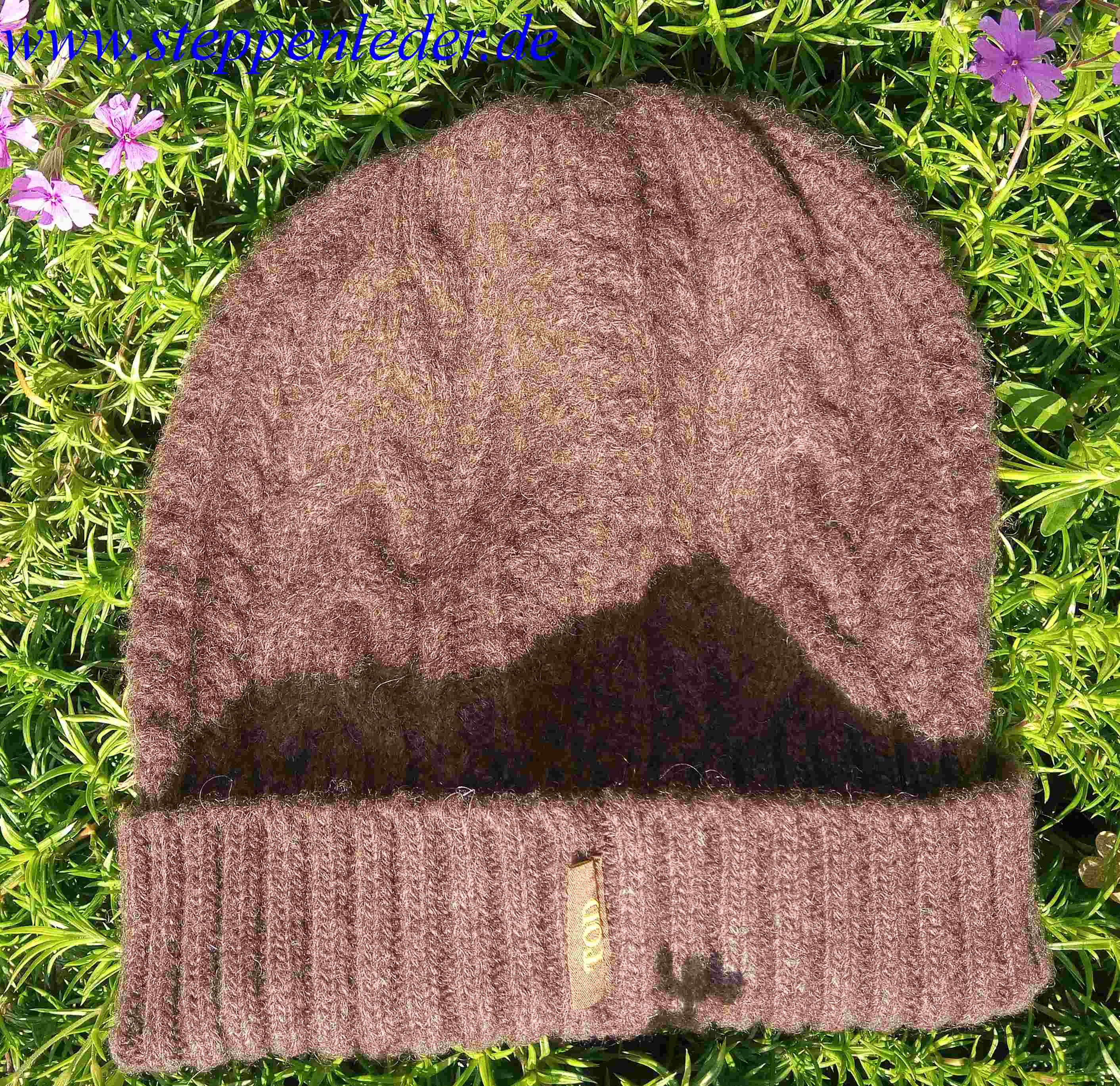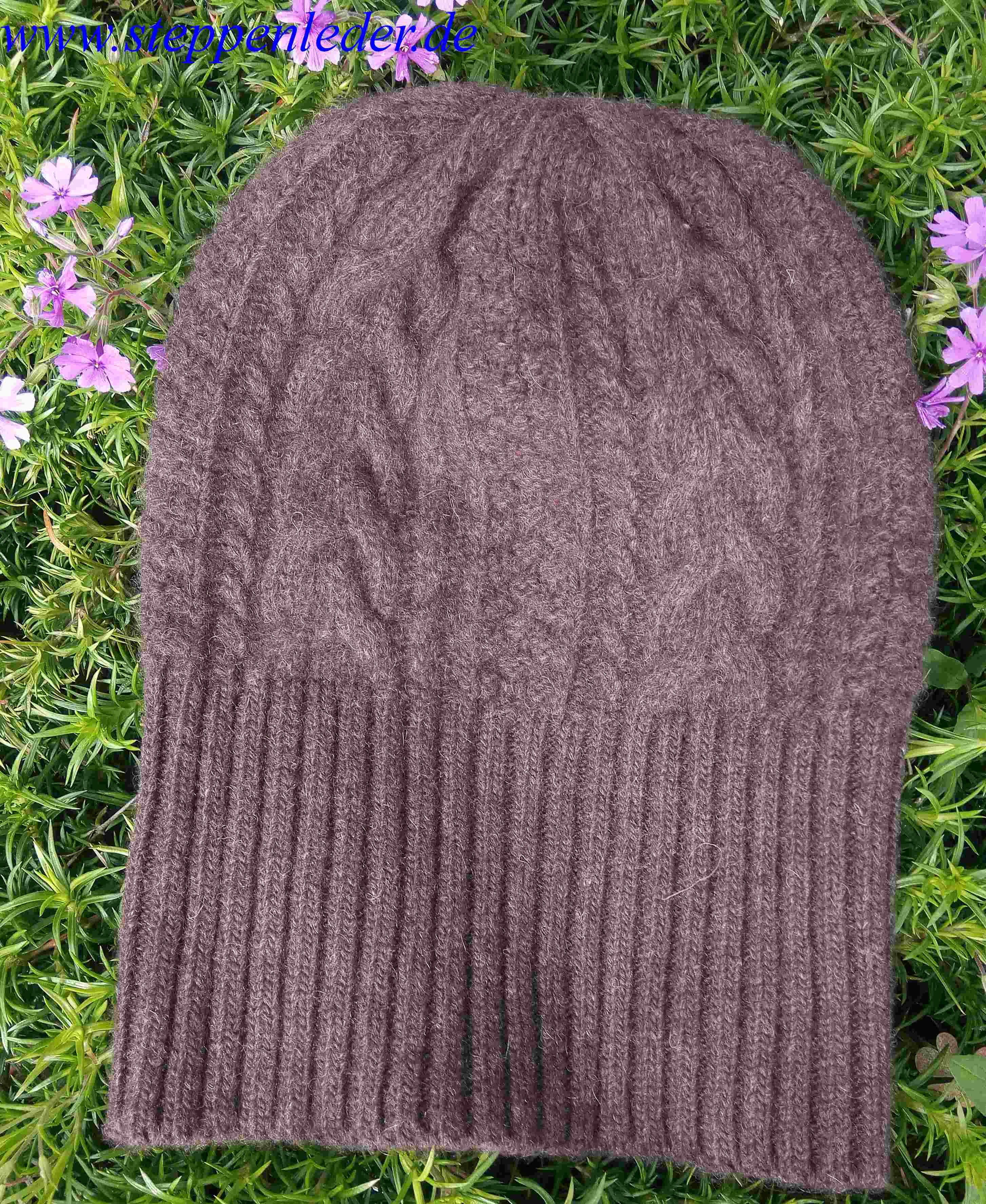 100% Yak-Wolle Mütze dunkelbraun mit Zopfmuster