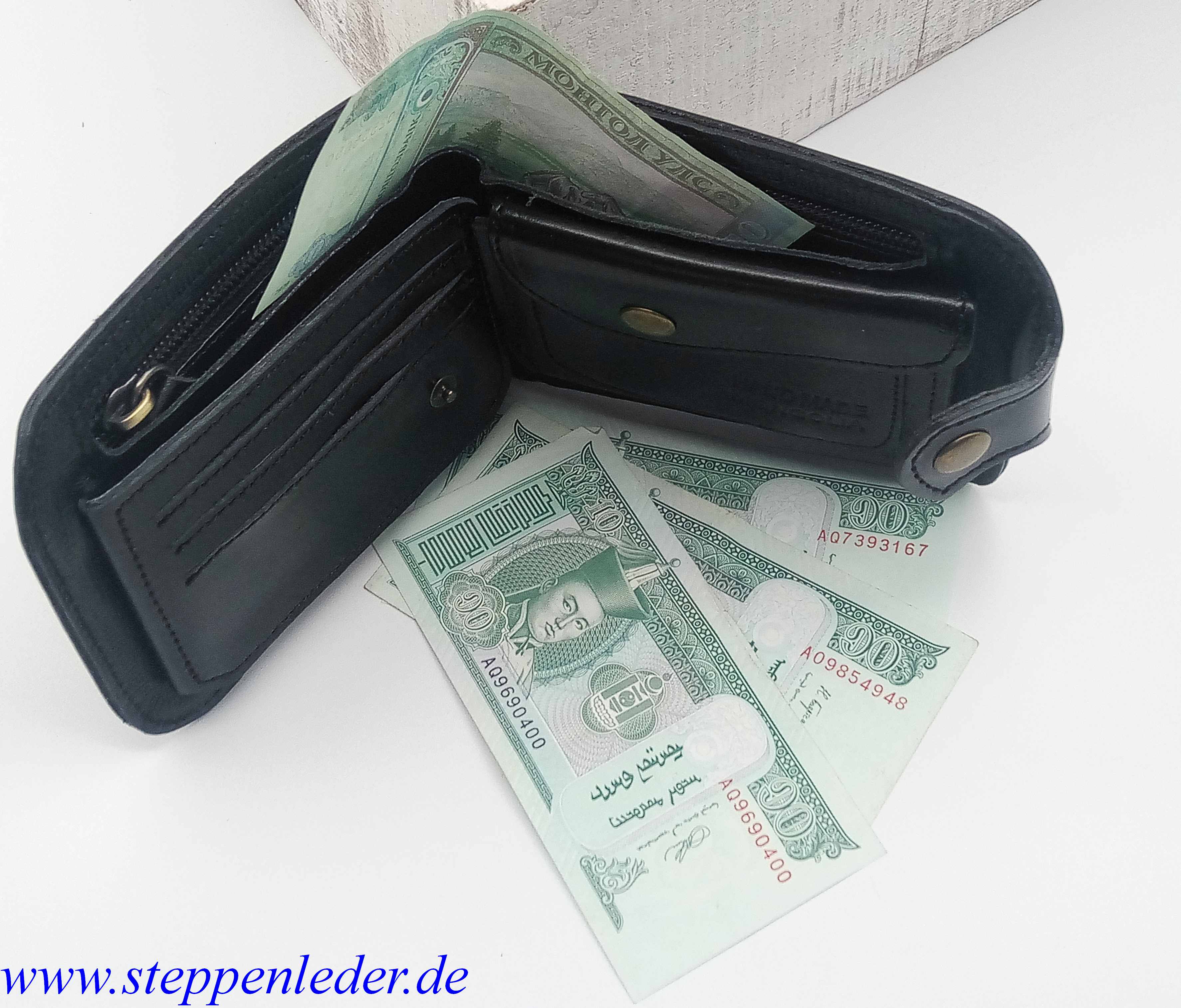 handgefertigte Brieftasche aus echten Leder in schwarz      praktisch, stilbewusst und langlebig