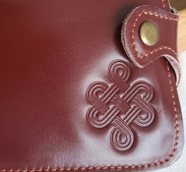 Brieftasche echtes Leder in braun praktisch, stilbewusst und langlebig Motiv: Ulziihee (endloser Knoten)